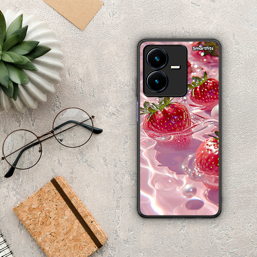 Θήκη Vivo Y22s Juicy Strawberries από τη Smartfits με σχέδιο στο πίσω μέρος και μαύρο περίβλημα | Vivo Y22s Juicy Strawberries case with colorful back and black bezels