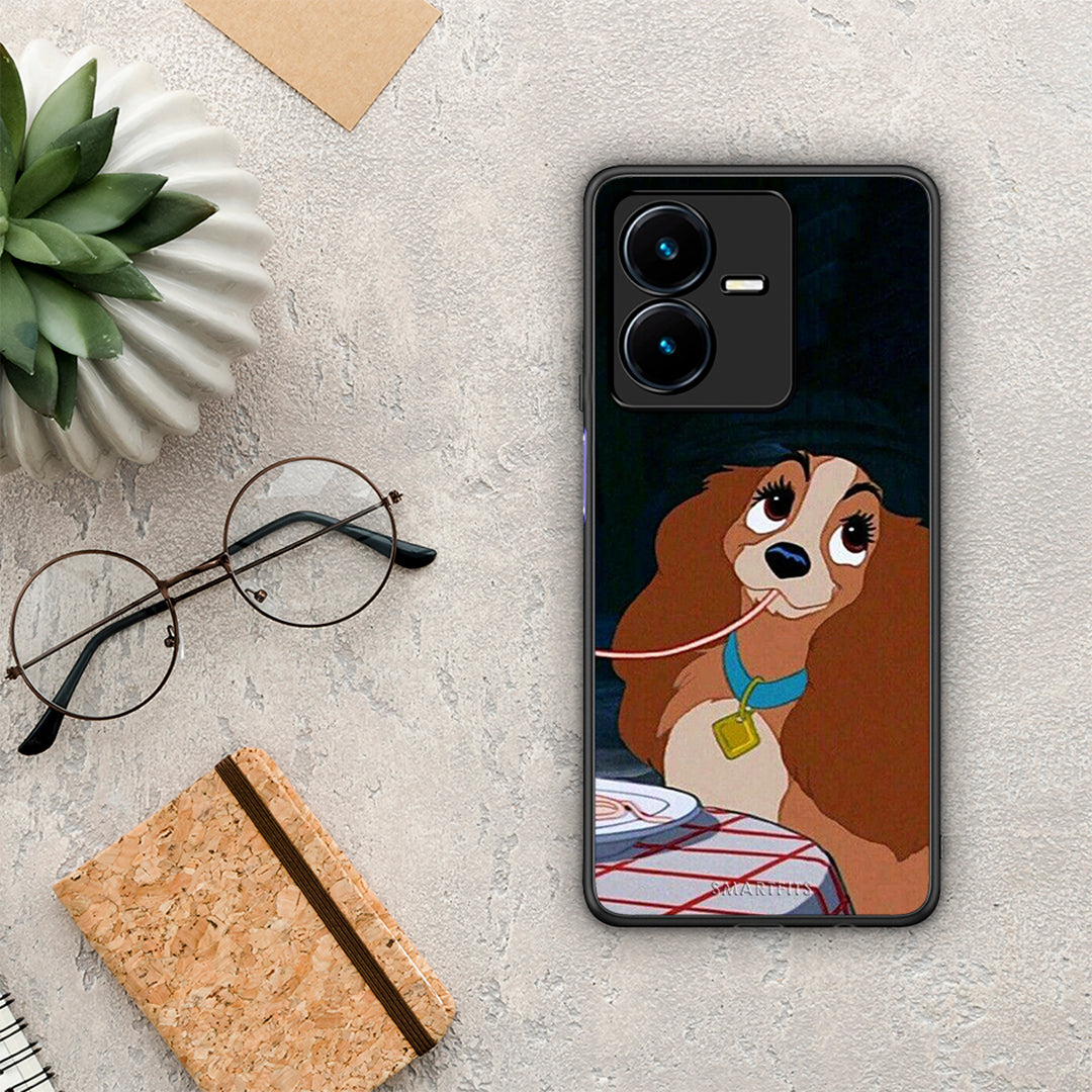 Θήκη Αγίου Βαλεντίνου Vivo Y22s Lady And Tramp 2 από τη Smartfits με σχέδιο στο πίσω μέρος και μαύρο περίβλημα | Vivo Y22s Lady And Tramp 2 case with colorful back and black bezels