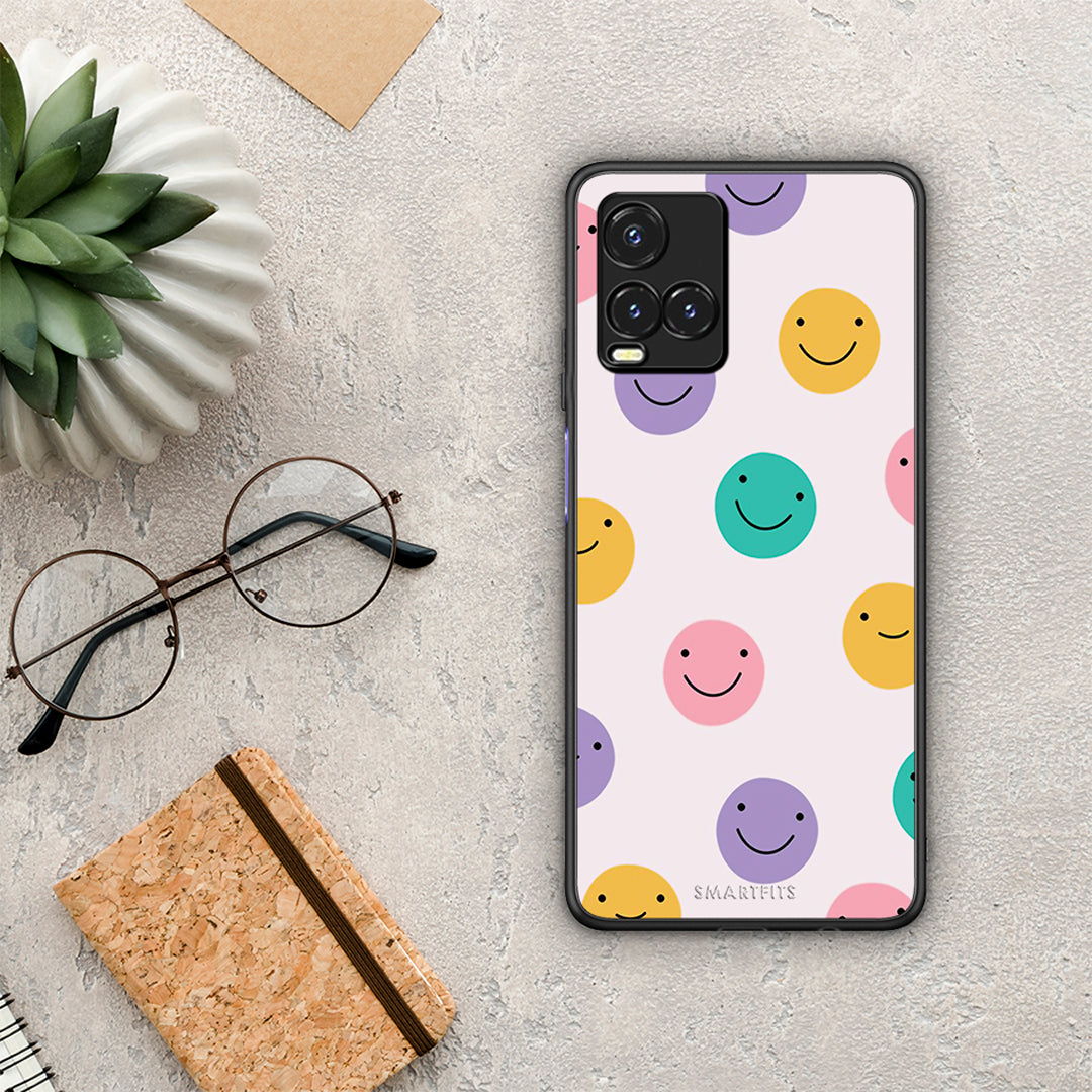 Θήκη Vivo Y33s / Y21s / Y21 Smiley Faces από τη Smartfits με σχέδιο στο πίσω μέρος και μαύρο περίβλημα | Vivo Y33s / Y21s / Y21 Smiley Faces case with colorful back and black bezels