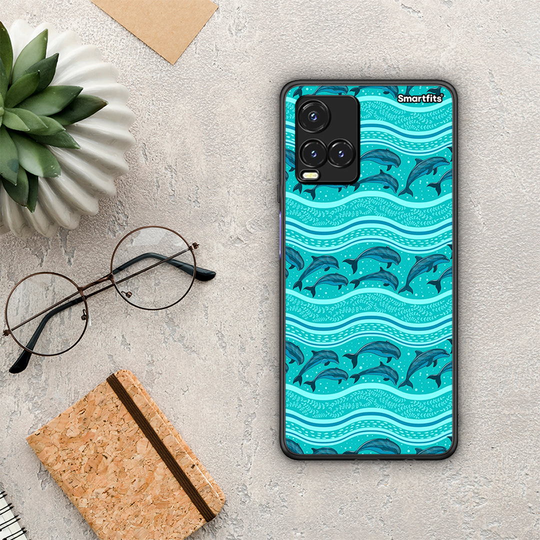 Θήκη Vivo Y33s / Y21s / Y21 Swimming Dolphins από τη Smartfits με σχέδιο στο πίσω μέρος και μαύρο περίβλημα | Vivo Y33s / Y21s / Y21 Swimming Dolphins case with colorful back and black bezels