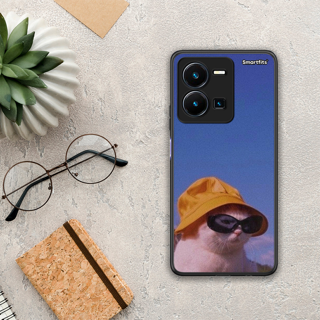 Θήκη Vivo Y35 5G Cat Diva από τη Smartfits με σχέδιο στο πίσω μέρος και μαύρο περίβλημα | Vivo Y35 5G Cat Diva case with colorful back and black bezels