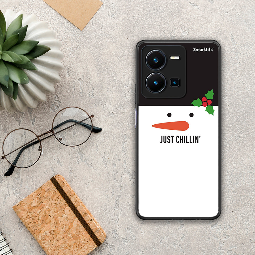 Θήκη Vivo Y35 5G Christmas Chillin από τη Smartfits με σχέδιο στο πίσω μέρος και μαύρο περίβλημα | Vivo Y35 5G Christmas Chillin case with colorful back and black bezels