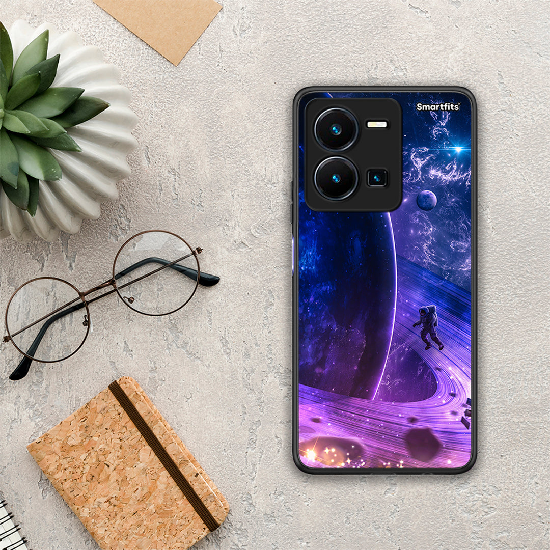 Θήκη Vivo Y35 5G Lost Astronaut από τη Smartfits με σχέδιο στο πίσω μέρος και μαύρο περίβλημα | Vivo Y35 5G Lost Astronaut case with colorful back and black bezels