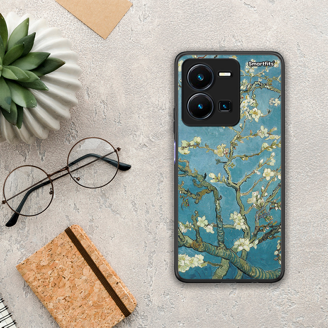 Θήκη Vivo Y35 5G White Blossoms από τη Smartfits με σχέδιο στο πίσω μέρος και μαύρο περίβλημα | Vivo Y35 5G White Blossoms case with colorful back and black bezels