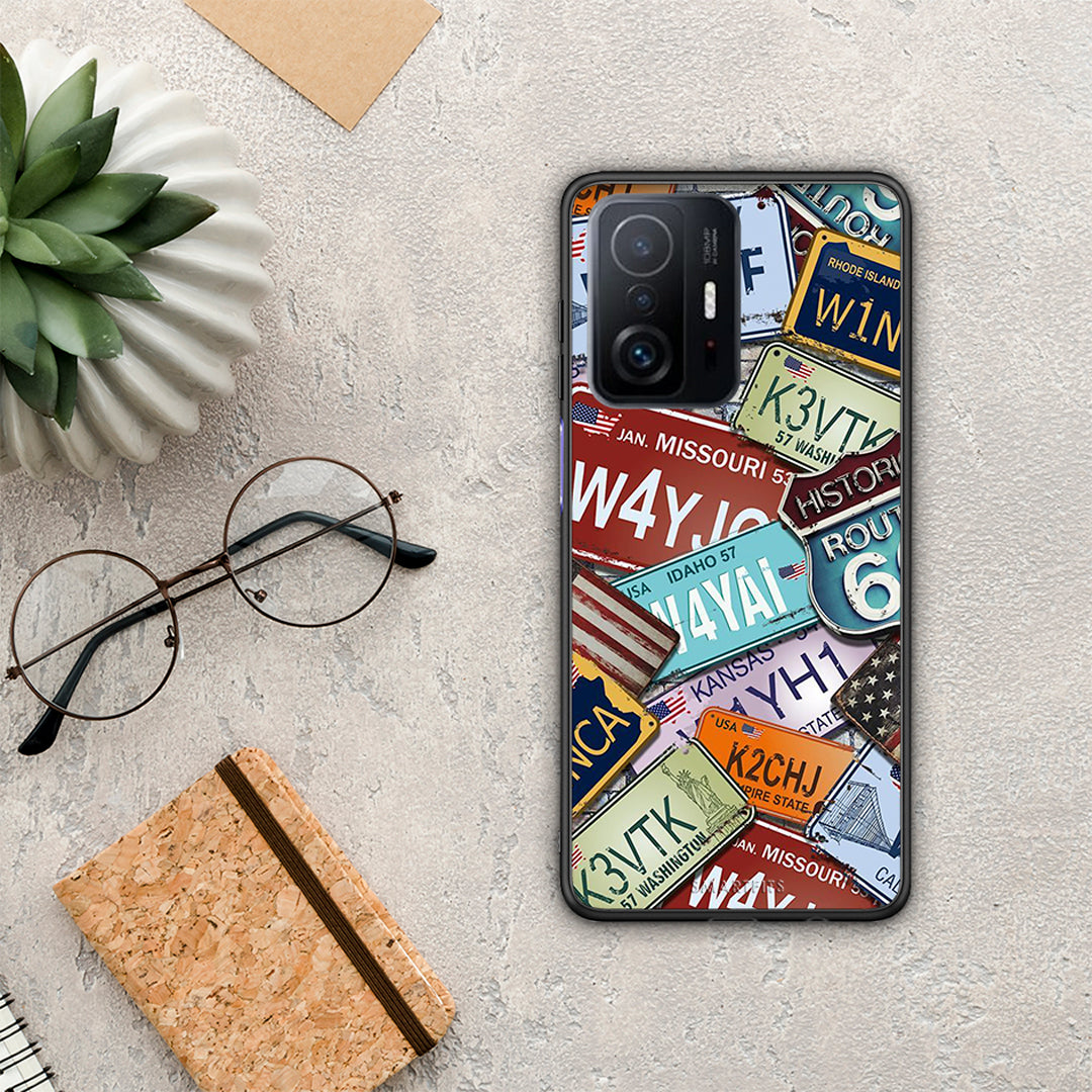 Θήκη Xiaomi 11T/11T Pro Car Plates από τη Smartfits με σχέδιο στο πίσω μέρος και μαύρο περίβλημα | Xiaomi 11T/11T Pro Car Plates case with colorful back and black bezels