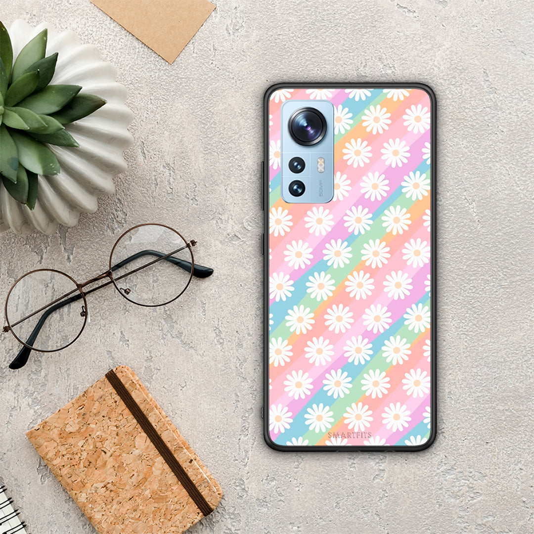 Θήκη Xiaomi 12/12X 5G White Daisies από τη Smartfits με σχέδιο στο πίσω μέρος και μαύρο περίβλημα | Xiaomi 12/12X 5G White Daisies case with colorful back and black bezels