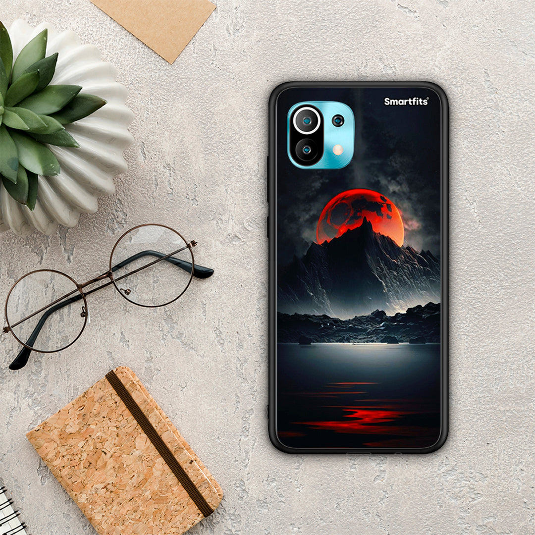Θήκη Xiaomi Mi 11 Red Full Moon από τη Smartfits με σχέδιο στο πίσω μέρος και μαύρο περίβλημα | Xiaomi Mi 11 Red Full Moon case with colorful back and black bezels