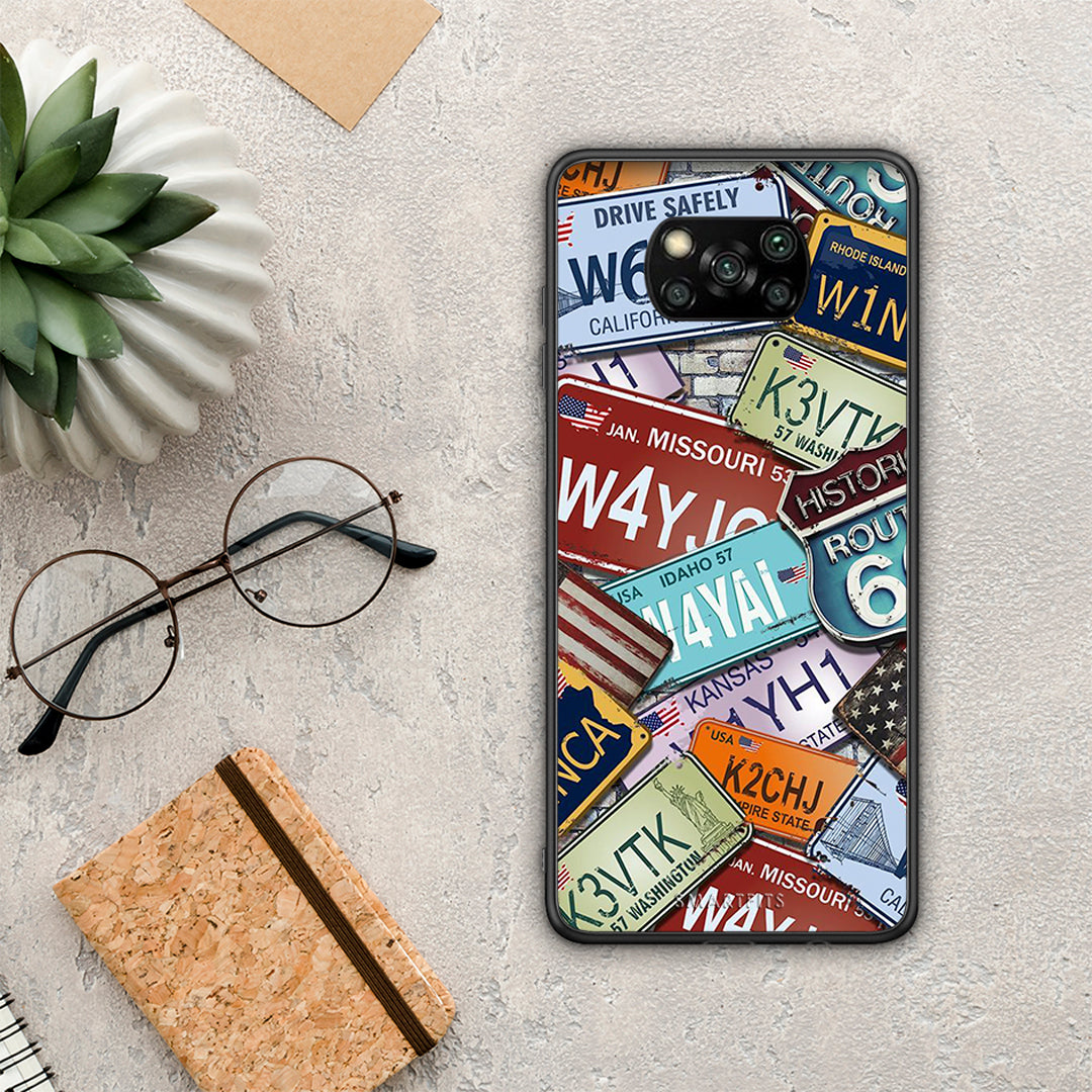 Θήκη Xiaomi Poco X3 Car Plates από τη Smartfits με σχέδιο στο πίσω μέρος και μαύρο περίβλημα | Xiaomi Poco X3 Car Plates case with colorful back and black bezels