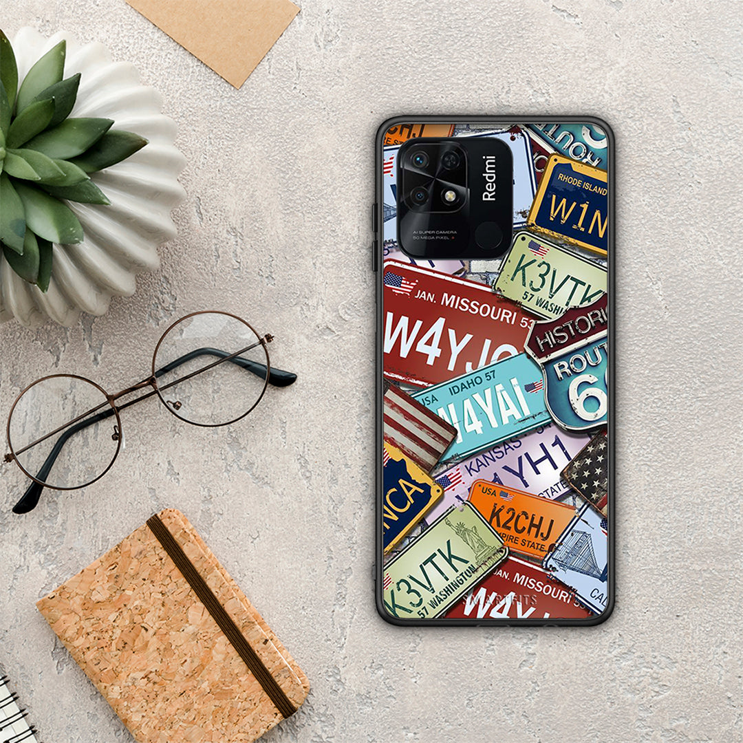 Θήκη Xiaomi Redmi 10C Car Plates από τη Smartfits με σχέδιο στο πίσω μέρος και μαύρο περίβλημα | Xiaomi Redmi 10C Car Plates case with colorful back and black bezels