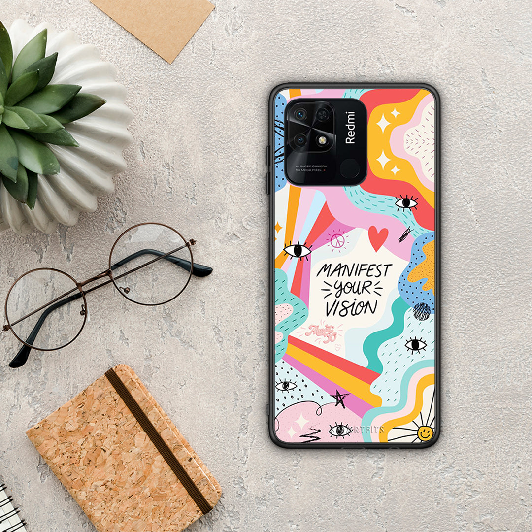 Θήκη Xiaomi Redmi 10C Manifest Your Vision από τη Smartfits με σχέδιο στο πίσω μέρος και μαύρο περίβλημα | Xiaomi Redmi 10C Manifest Your Vision case with colorful back and black bezels