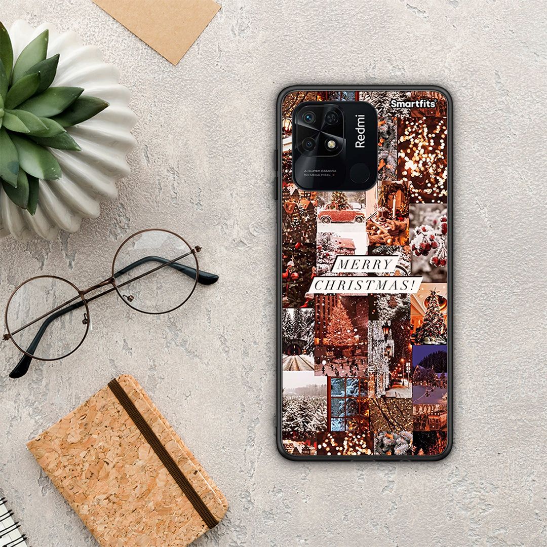 Θήκη Xiaomi Redmi 10C Xmas Collage από τη Smartfits με σχέδιο στο πίσω μέρος και μαύρο περίβλημα | Xiaomi Redmi 10C Xmas Collage case with colorful back and black bezels