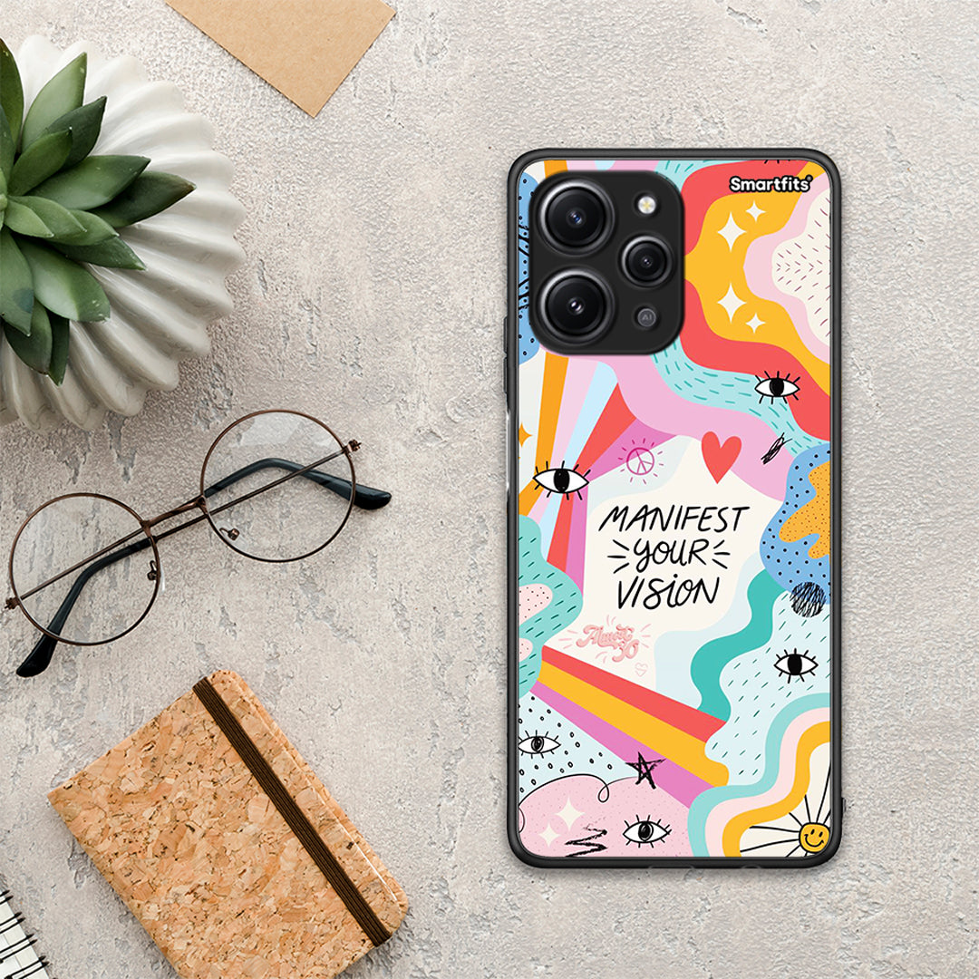 Θήκη Xiaomi Redmi 12 4G Manifest Your Vision από τη Smartfits με σχέδιο στο πίσω μέρος και μαύρο περίβλημα | Xiaomi Redmi 12 4G Manifest Your Vision case with colorful back and black bezels