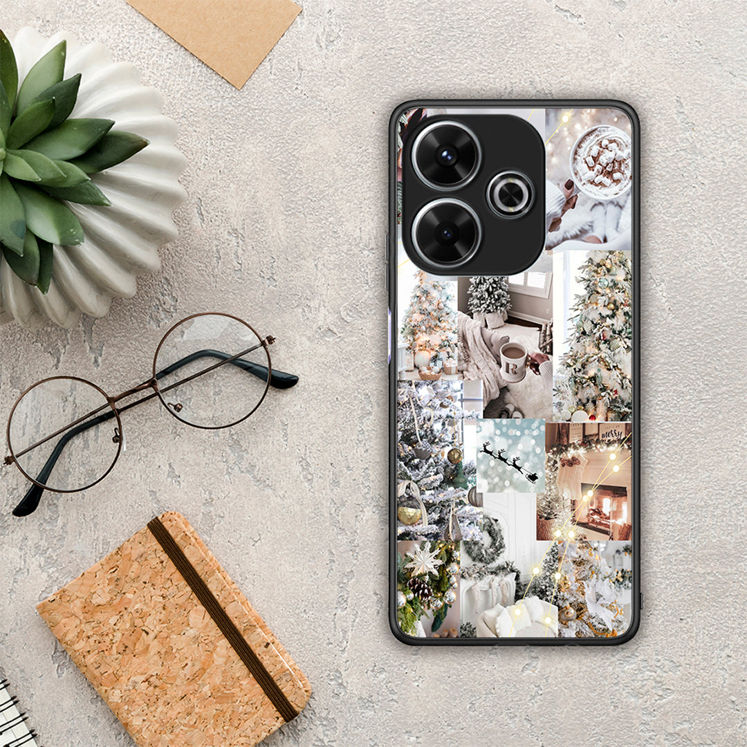 Θήκη Xiaomi Redmi 13 White Christmas από τη Smartfits με σχέδιο στο πίσω μέρος και μαύρο περίβλημα | Xiaomi Redmi 13 White Christmas case with colorful back and black bezels