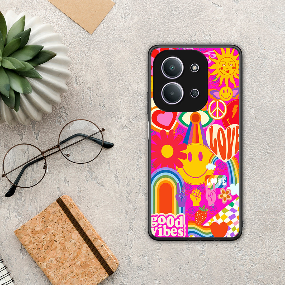 Θήκη Xiaomi Redmi 15C Hippie Love από τη Smartfits με σχέδιο στο πίσω μέρος και μαύρο περίβλημα | Xiaomi Redmi 15C Hippie Love case with colorful back and black bezels