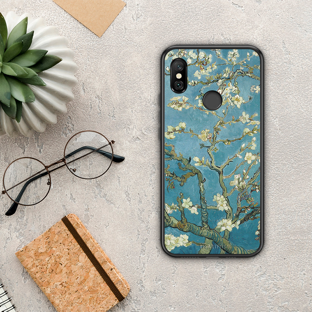 Θήκη Xiaomi Redmi Note 6 Pro White Blossoms από τη Smartfits με σχέδιο στο πίσω μέρος και μαύρο περίβλημα | Xiaomi Redmi Note 6 Pro White Blossoms case with colorful back and black bezels